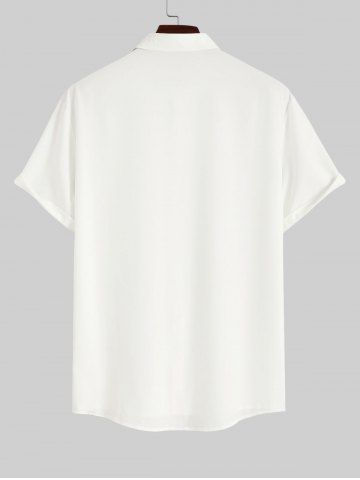 Hawaii Men's Turn-down Collar Watercolor Flower Print Full Buttons Pocket Shirt - White - Xl