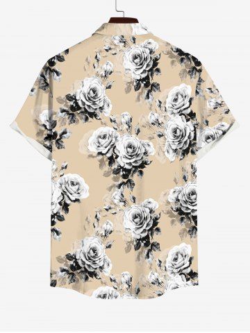 Hawaii Men's Vacation Style Rose Flower Leaf Print Shirt Collar Buttons Shirt - Champagne - L