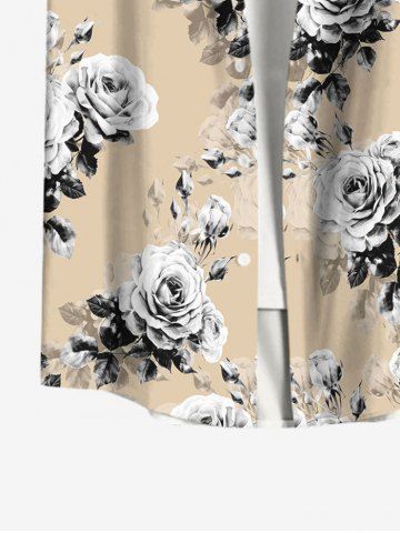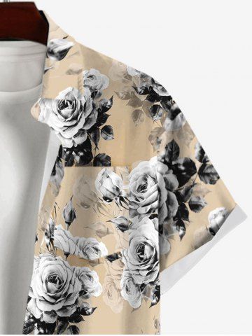 Hawaii Men's Vacation Style Rose Flower Leaf Print Shirt Collar Buttons Shirt - Champagne - 2xl