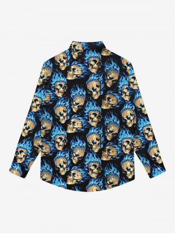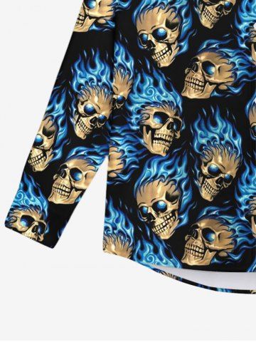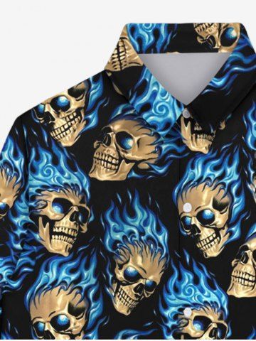 Gothic 3D Skulls Fire Flame Print Halloween Buttons Shirt For Men - Black - 3xl