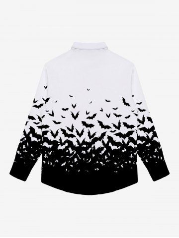 Gothic Bats Print Halloween Buttons Shirt For Men - White - Xl