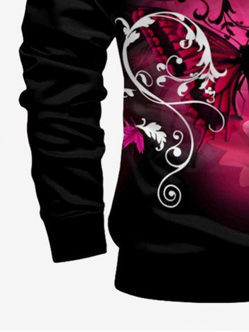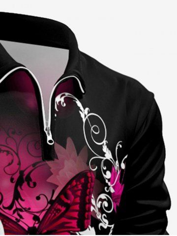 Plus Size Butterfly Flower Print Zipper Polo Shirt For Men - Black - M