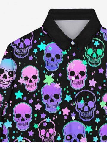 Gothic Colorful Ombre Skulls Stars Print Halloween Shirt For Men - Purple - Xl
