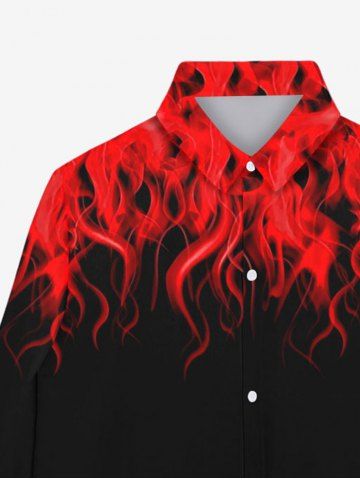 Gothic Fire Flame Print Buttons Lapel Collar Shirt For Men - Black - 3xl