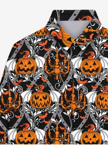 Tops > Gothic Pumpkin Bat Candle Print Halloween Buttons Shirt For Men