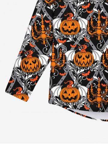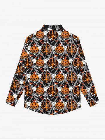 Gothic Pumpkin Bat Candle Print Halloween Buttons Shirt For Men - Multi-a - M