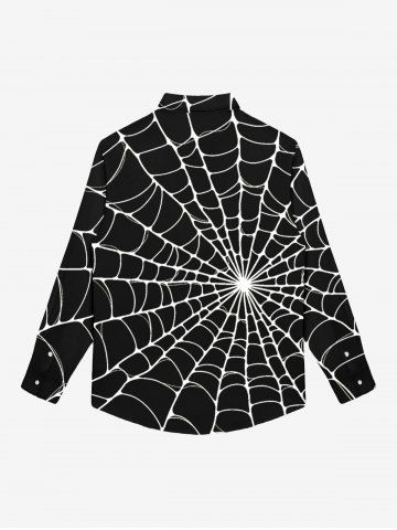 Gothic Spider Web Print Buttons Halloween Shirt For Men - Black - 3xl