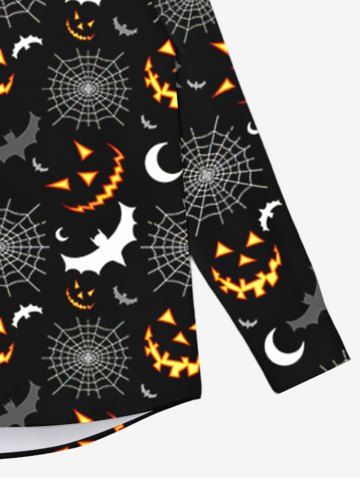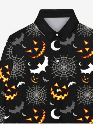 Gothic Spider Web Pumpkin Bat Moon Print Halloween Buttons Shirt For Men - Black - M