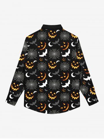 Gothic Spider Web Pumpkin Bat Moon Print Halloween Buttons Shirt For Men - Black - 3xl