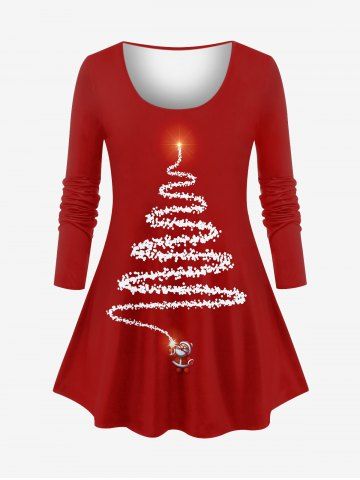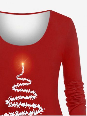 Plus Size Women's Christmas Tree Santa Claus Glitter 3D Print Long Sleeves T-shirt - Red - 3x