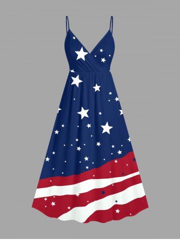 Plus Size Patriotic American Flag Stars Print Surplice A Line Cami Dress - DEEP BLUE - 5X