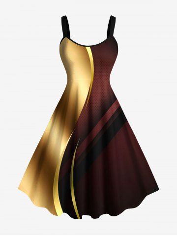 Plus Size Curve Light Beam Ombre Colorblock Print Tank Dress - YELLOW - 5X