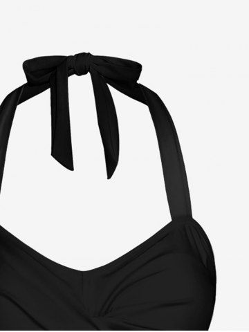 Fashion Ombre Galaxy Sunflower Print Twist Backless Halter Tankini Top - Black - 5x