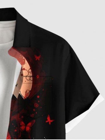 Plus Size Butterfly Moon Print Buttons Pocket Shirt For Men - Black - 2xl