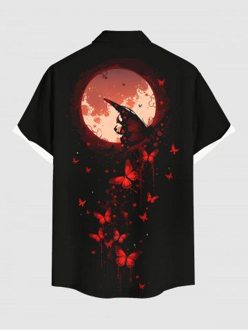 Plus Size Butterfly Moon Print Buttons Pocket Shirt For Men - Black - 6xl