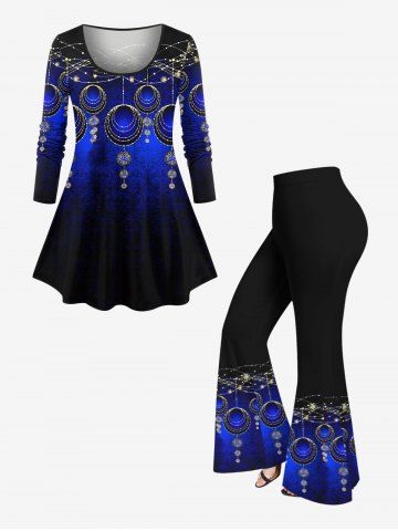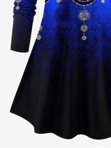 Plus Size Christmas Ball Tassel Floral Print Long Sleeves T-shirt - Navy Blue - 1x