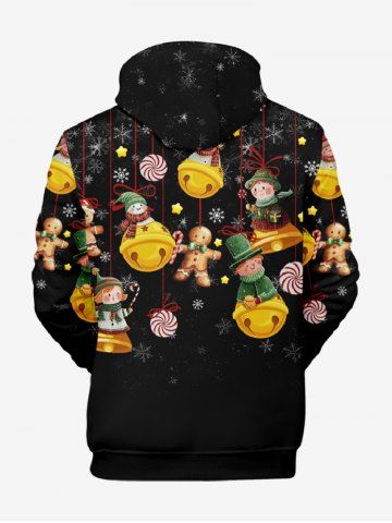 Plus Size Christmas Candy Snowflake Swnoman Bell Gingerbread Print Drawstring Pockets Hoodie For Men - Black - 4xl