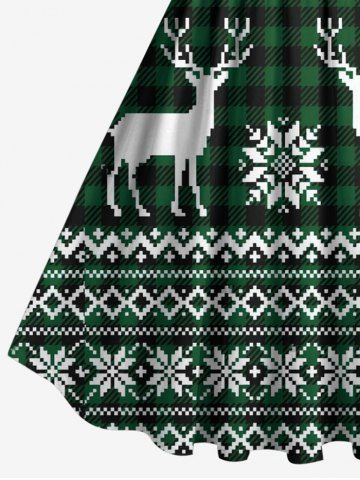 Plus Size Christmas Elk Snowflake Print 1950s Vintage Dress - Green - M