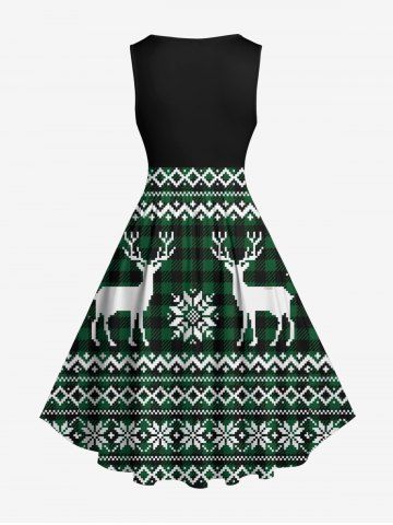 Plus Size Christmas Elk Snowflake Print 1950s Vintage Dress - Green - 6x