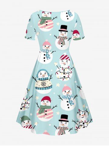 Plus Size Christmas Light Snowflake Snowman Star Print Cinched Dress - Light Blue - Xxs