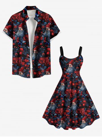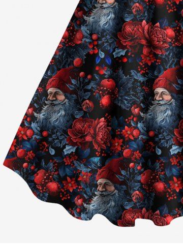 Plus Size Christmas Santa Claus Flowers Leaf Fruit Print Tank Dress - Black - S