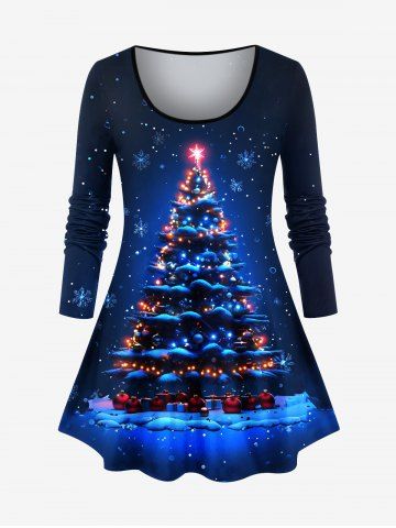 Plus Size Christmas Tree Ball Light Snowflake Print Long Sleeves T-shirt - Midnight Blue - Xs