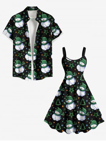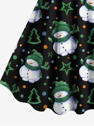 Plus Size Christmas Tree Snowman Star Dots Print Tank Dress - Black - L