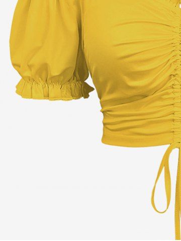 Plus Size Cinched Ruched Ruffles Cold Shoulder Cami Top - Yellow - 3x
