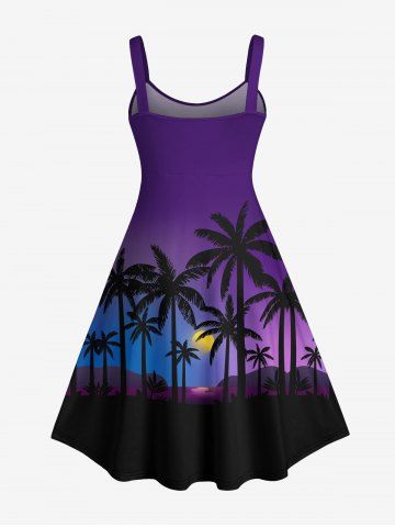 Plus Size Coconut Tree Moon Ombre Sky Print Hawaii Tank Dress - Purple - L