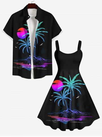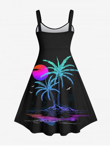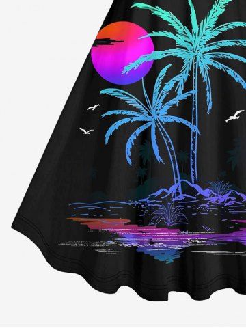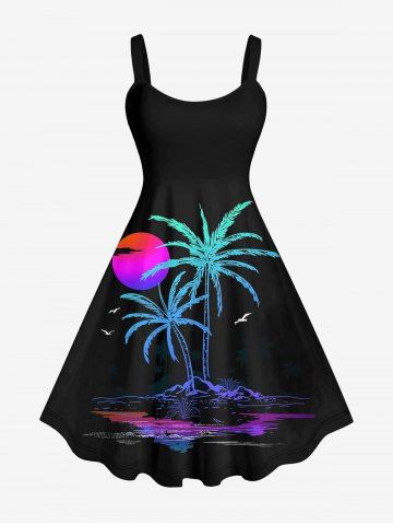 Plus Size Coconut Tree Ombre Sun Bird Print Hawaii Tank Dress - Black - S