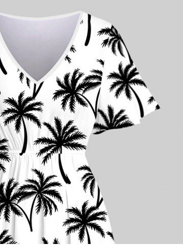 Plus Size Coconut Tree Print Split Hawaii Dress - White - L