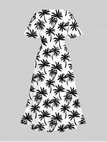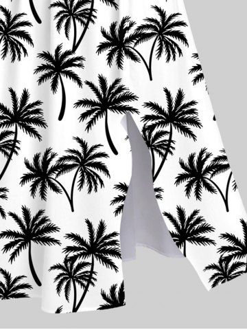 Plus Size Coconut Tree Print Split Hawaii Dress - White - 2x