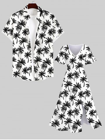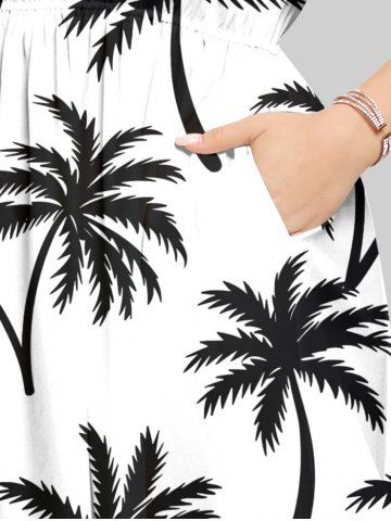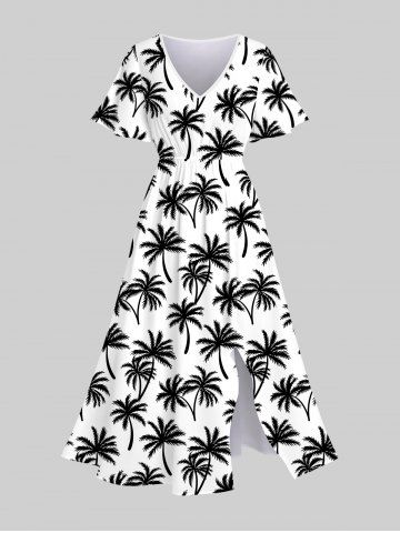 Plus Size Coconut Tree Print Split Hawaii Dress - White - 5x