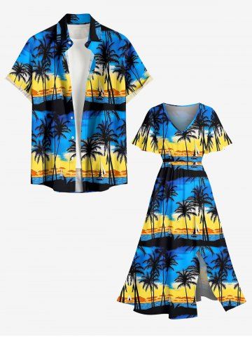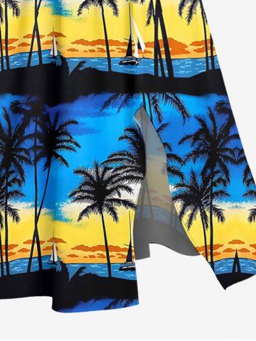 TRENDING NOW > Plus Size Coconut Tree Sailboat Seascape Print Split Hawaii Midi Dress