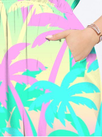 Plus Size Colorful Coconut Tree Ombre Colorblock Print Hawaii Split Dress - Multi-a - 4x