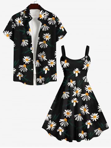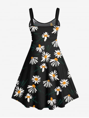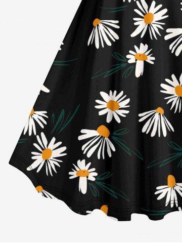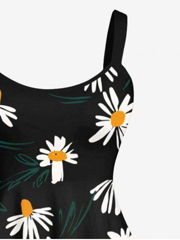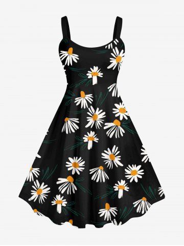 Plus Size Daisy Flowers Leaf Print Hawaii Tank Dress - Black - 6x