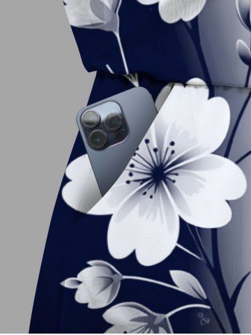 Plus Size Dip Dye Ombre Flower Branch Print Hawaii Drawstring Pocket Romper - White - 4x