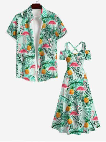 TRENDING NOW > Plus Size Flamingo Coconut Tree Pineapple Print Crisscross Cold Shoulder Hawaii Dress
