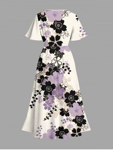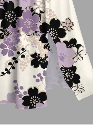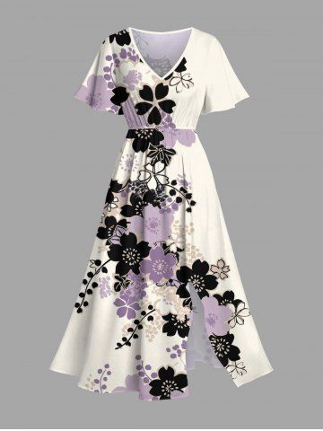 TRENDING NOW > Plus Size Flowers Leaf Print Split Hawaii Midi Dress