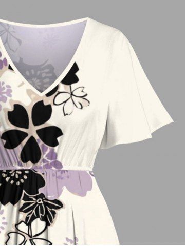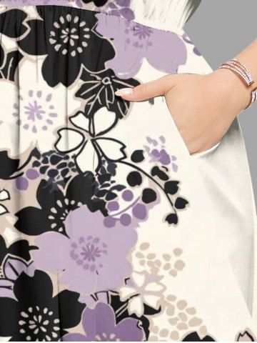 Plus Size Flowers Leaf Print Split Hawaii Midi Dress - Apricot - 6x