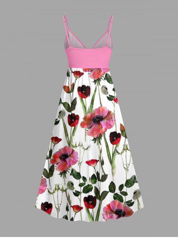 Plus Size Flowers Leaf Print Surplice Hawaii Cami Dress - Light Pink - S