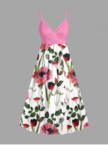 TRENDING NOW > Plus Size Flowers Leaf Print Surplice Hawaii Cami Dress