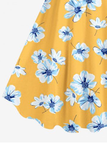 Plus Size Flowers Print Backless A Line Hawaii Dress - Yellow - 3x