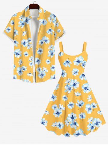 Plus Size Flowers Print Backless A Line Hawaii Dress - Yellow - 6x