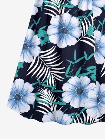 Plus Size Flowers Tropical Leaf Print Surplice Hawaii Cami Dress - Black - 4x