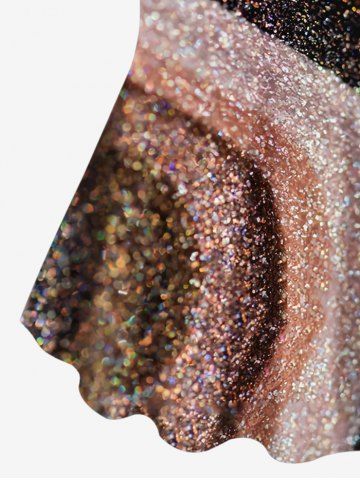 Plus Size Glitter Sparkling Sequins Striped Print T-shirt - Coffee - Xs
