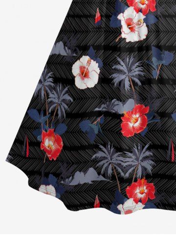 Plus Size Hibiscus Flowers Coconut Tree Print Ruched Lattice Crisscross Straps Hawaii Dress - Black - 6x