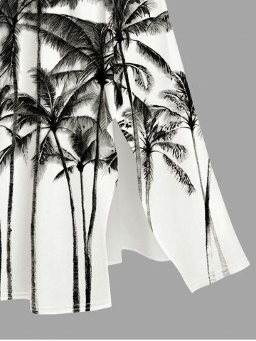 Plus Size Ink Painting Coconut Tree Print Pocket Hawaii Split Dress - White - M