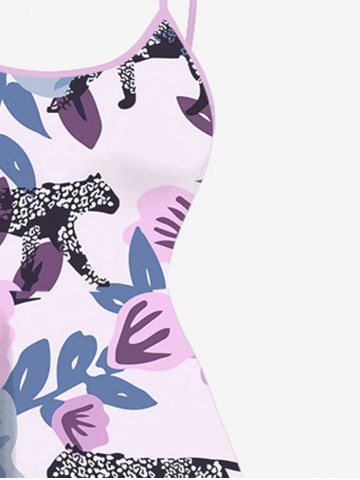 Hawaii Plus Size Leopard Flower Leaf Print High Low Cami Dress - Multi-a - 5x