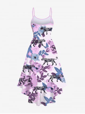 TRENDING NOW > Hawaii Plus Size Leopard Flower Leaf Print High Low Cami Dress